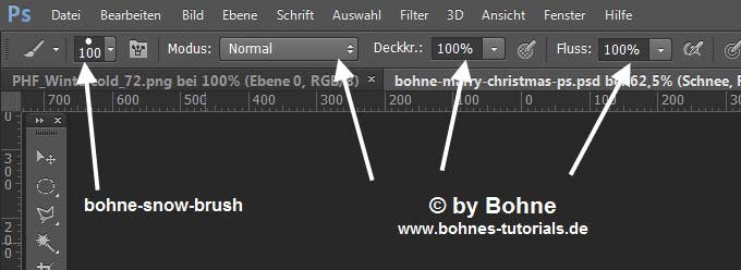 Aktiviere das Pinsel-Werkzeug such dir die Pinselspitze "bohne-snow-brush" heraus