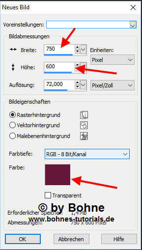 07) Öffne ein neues Blatt 750 X 600 Pixel in HGF