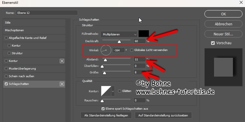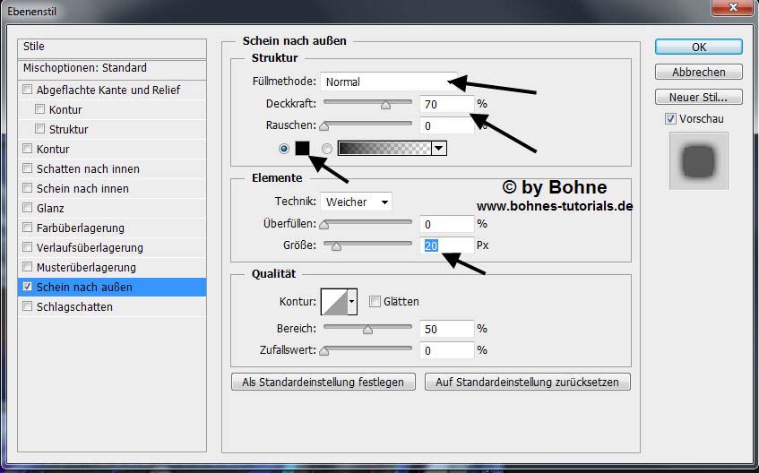23) Ebenenstil hinzufügen -> Schein nach außen