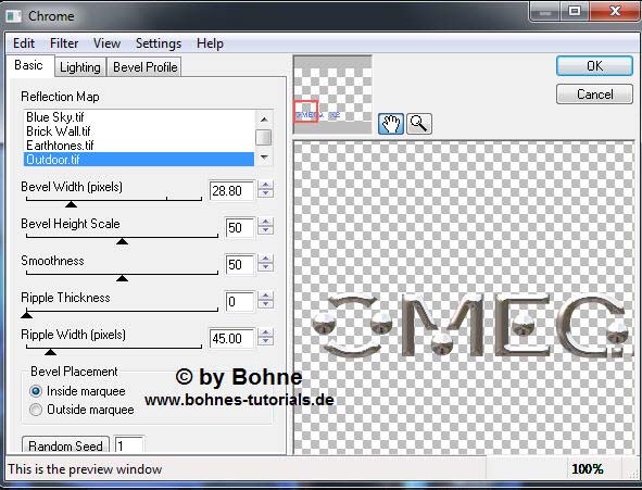 Filter –> Eye Candy 4000 –> Chrome, mit dieser Einstellung