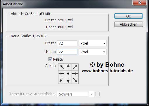 Bild –> Arbeitsfläche. Erweitern um 72 PX
