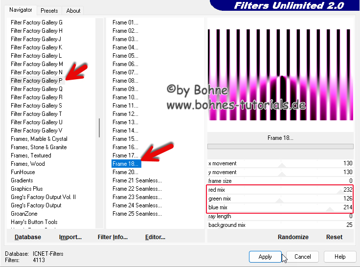 In den Bereich ab "red mix" bis "blue mix", kannst Du deine RGB Werte eintragen.