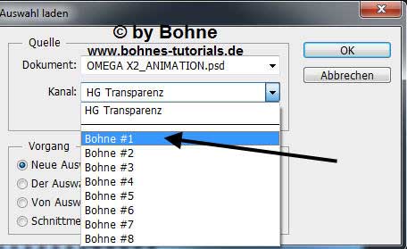 11) Auswahl -> Auswahl laden suche dir jetzt "Bohne #6" heraus.