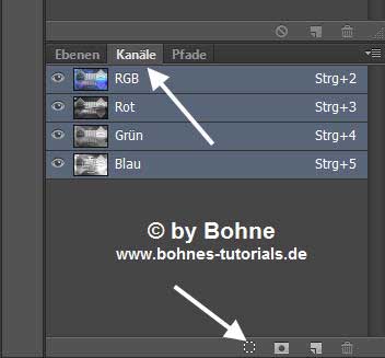 Wechsle zu den Kanälen und klicke das "Kanal als Auswahl laden" Symbol