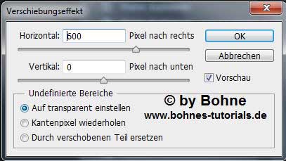 Filter -> Sonstige Filter -> Verschiebungseffekt , jetzt mit diesen Werten -> Horizontal 600