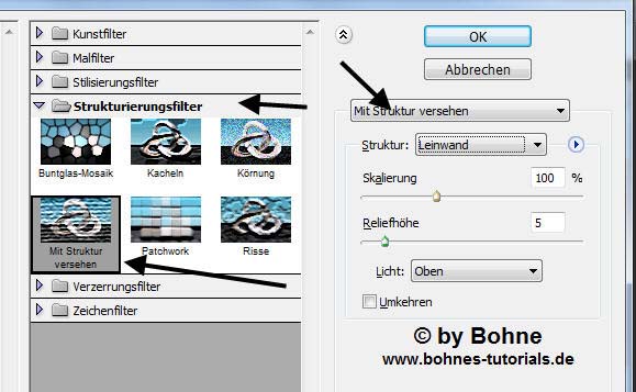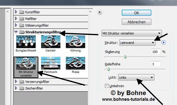 Filter ->Strukturierungsfilter -> Mit Struktur versehen -> Leinwand