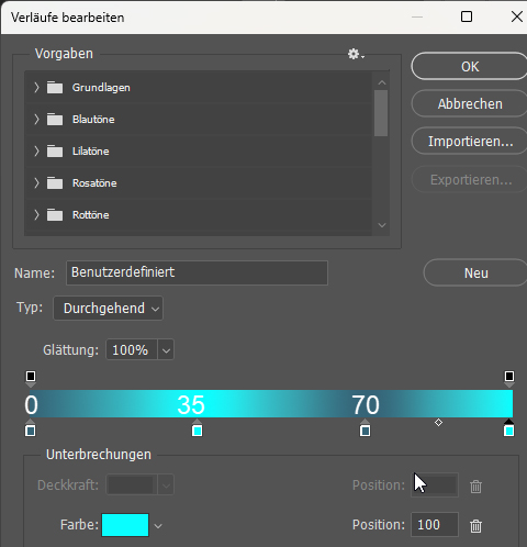 Stelle nun folgenden Farbverlauf ein