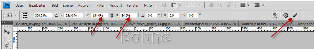 7. mit Strg+T gehst Du in den Frei transformieren Modus und trage bei Breite 134% und bei Höhe 84% ein