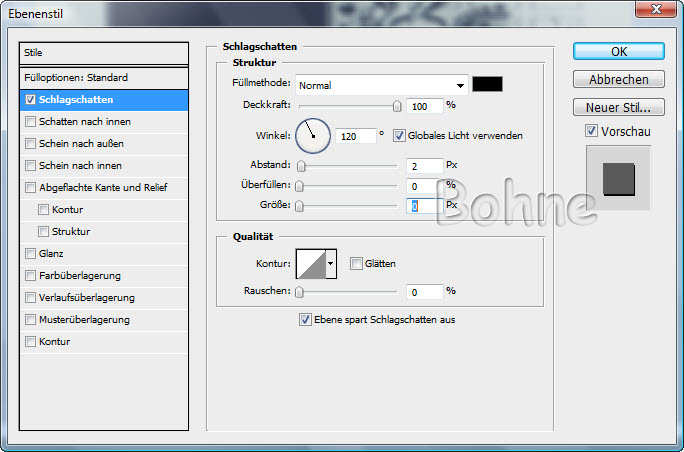 23. auch hier den Ebenenstil einfügen, er befindet sich ja noch im Zwischenspeicher