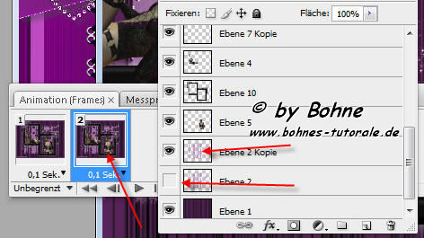 50) Aktiviere nun Frame2 und schalte das Auge bei Ebene 2 Aus und bei Ebene2 kopie ein