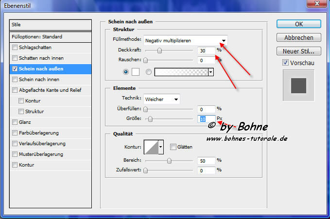 19)Ebenenstil hinzufügen -> Schein nach außen