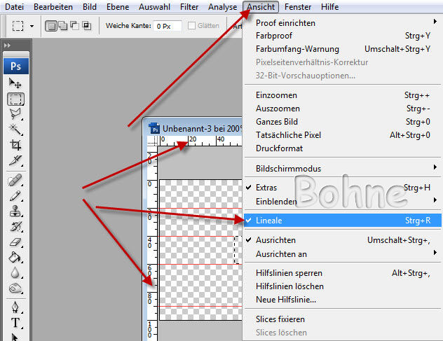 4) widerhole den letzten Schritt und setzte auf 40-60-und 80 Pixel noch eine Hilfslinie