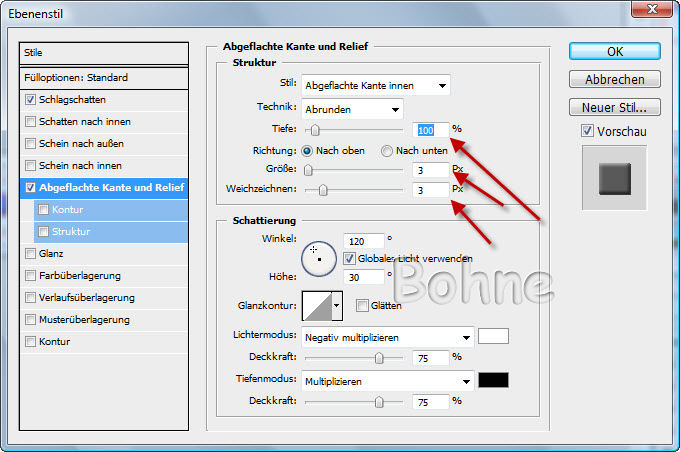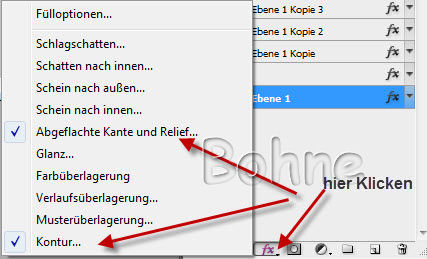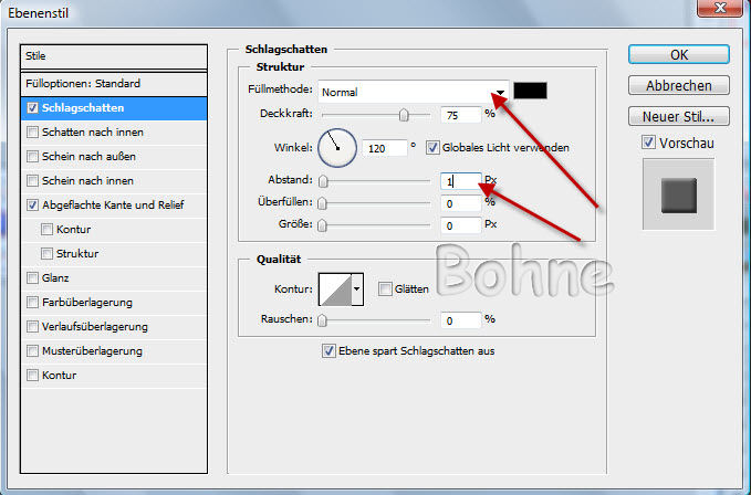 Ich habe einen Schlagschatten und Abgeflachte Kante und Relief gemacht