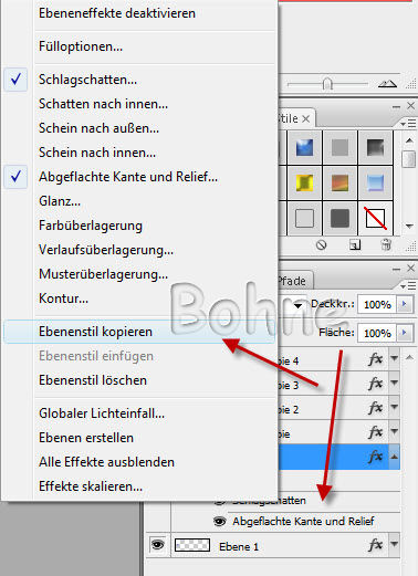14) mit rechts Klick auf den Ebenenstil , Ebenenstil kopieren