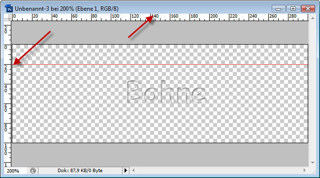 3) klicke nun im Lineal und ziehe mit gedrückter linker Maustaste eine Hilfslinie auf 20 Pixel