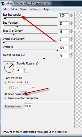 Mit diesen Einstellungen, achte auf Star Size (pixels)