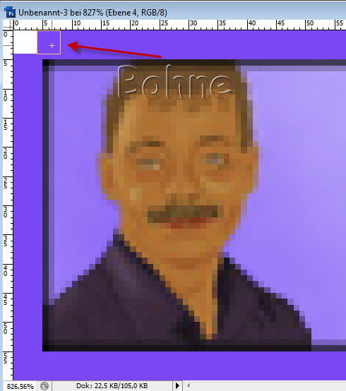 22) aktiviere Ebene „Weiß 1“ setze jetzt den Buntstift genau unter der