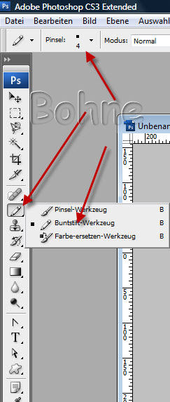 15) aktiviere jetzt das Buntstift-Werkzeug und stelle die Vordergrundfarbe auf Weiß 4 Pixel