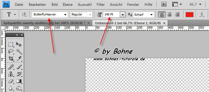 2) aktivierer das Horizontales Text-Werkzeug mit diesen einstellungen