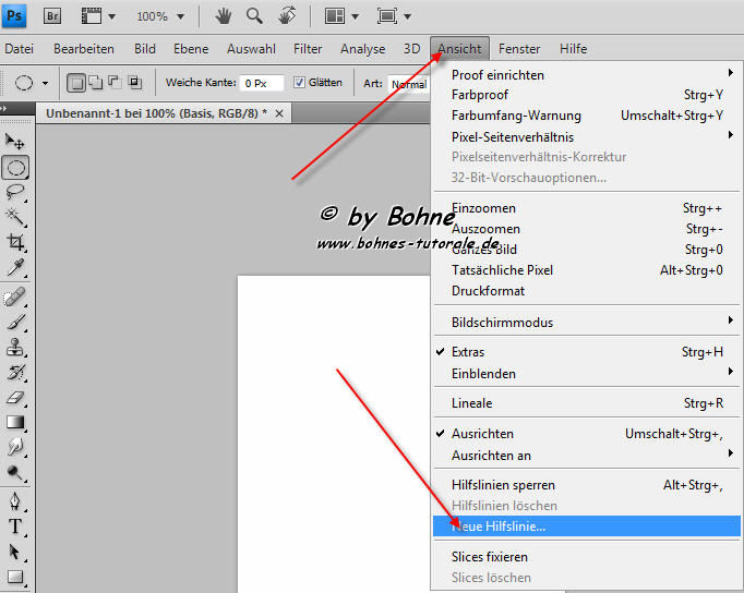 4) nun geh auf Ansicht -> neue Hilfslinie