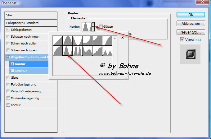 22) Als Ebeneneffekt nehmen wir Kontur mit 2px breite, Schwarz und 90% Deckkraft