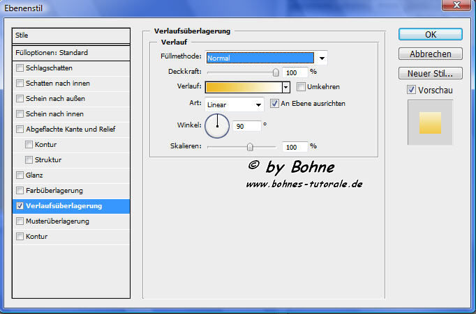 Ebene mit dem kleinen Kreis abermals auf Ebenenstil -> Verlaufsüberlagerung