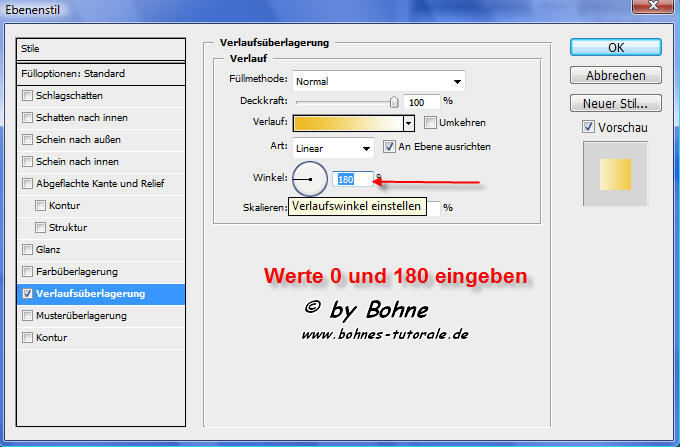 du kannst auch die Richtung des Verlaufs ändern in dem du die Werte des Winkels änderst
