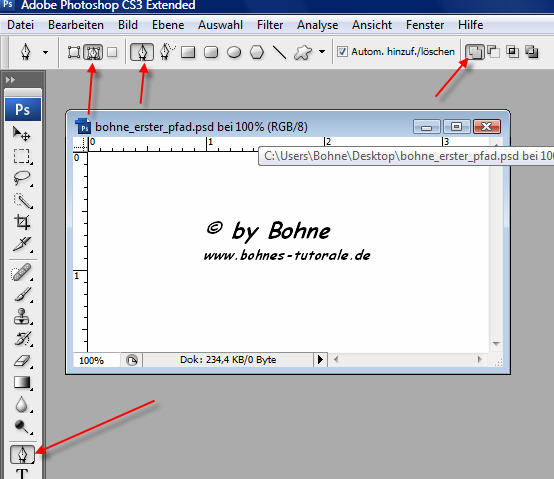 2) aktiviere das Zeichenstift-Werkzeug und mit diesen Einstellungen