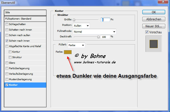4) Ebeneneffekt hinzufügen -> Schein nach innen