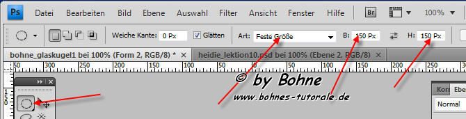 2) aktiviere das Ellipse-Werkzeug und stelle eine feste größe von