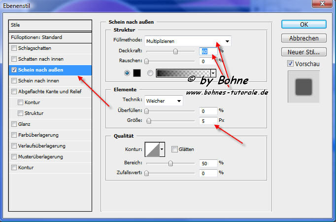 5. Ebenenstil hinzufügen-> Schein nach ausßen