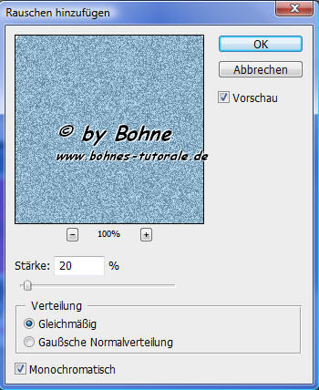 26. Filter-> Rauschfilter-> Rauschen hinzufügen 20%