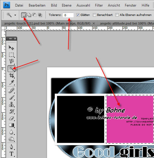 44. aktiviere das Zauberstab-Werkzeug und klicke auf das pinke Kästchen