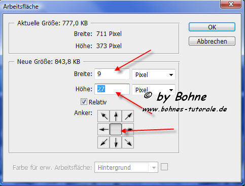 50. aktiviere die Ebene "backround", Bild-> Arbeitsfläche erweitern um 9 x 27 Pixel