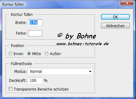 13. Bearbeiten-> Kontur füllen 1 Pixel Weiß