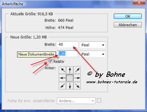 3)Bild-> Arbeitsfläche erweitern um 40 X 126 Pixel
