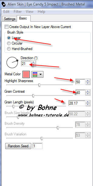 7) Filter-> Alienskin Eye Candy 5-> Impact -> Brushed Metal