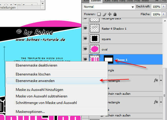 25) rechter Mausklick auf die Ebenenmaske und-> Ebenenmaske anwenden und Ebenenstil einfügen