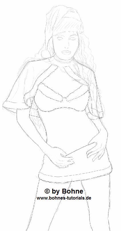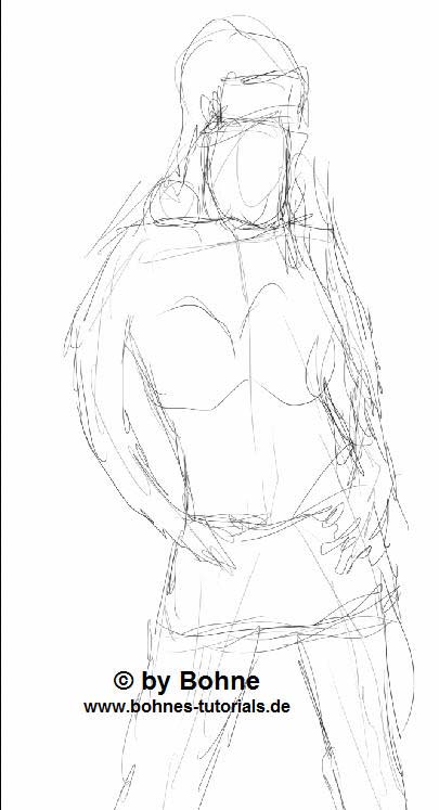 04) Nun beginne ich erst mal grob meine Figur vor zu zeichnen, dass sieht dann in etwa so aus