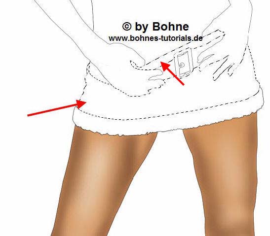 15) Ich möchte gerne am Rock und am Hals einen Gürtel setzen, den zeichne ich mir jetzt ein
