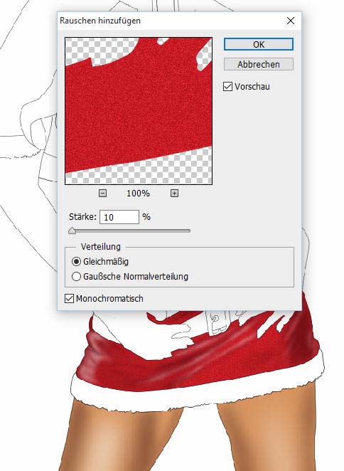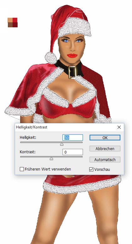 Da unsere Sexy Santa echt aussehen soll, brauchen wir Höhen und Tiefen im Bild,