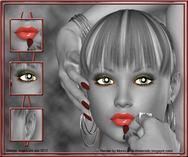 15) als nächstes möchte ich alles was rot ist, also Lippen und Fingernägeln, einfärben