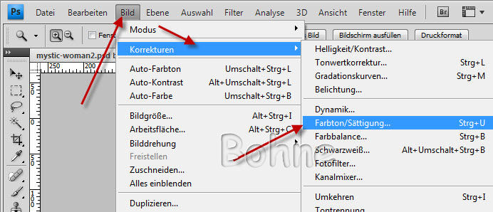 17) Bild-> Korrektur-> Farbton /Sättigung,