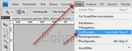 dazu klicke in der Menüleiste auf Filter-> Verflüssigen (Umschalt+Strg+X)
