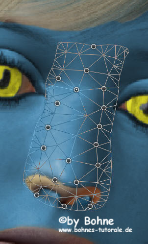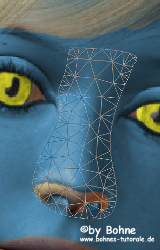 14) zieh nun über das Formgitter die Nase in die Breite