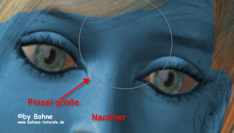 7) nun werden die Augen noch eingefärbt, dazu wieder im Maskier-Modus wechseln