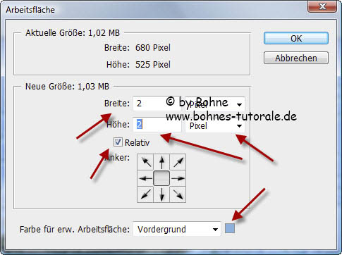 6) Bild-> Arbeitsfläche-> erweitern um 4 Pixel mit der dunklen Hintergrundfarbe