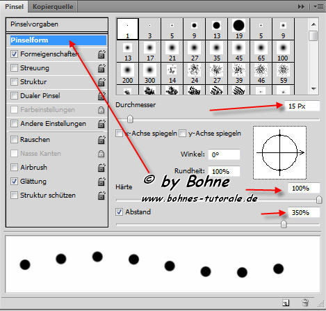 10)aktiviere das Radiergummi-Werkzeug und öffne das Pinsel-Fenster