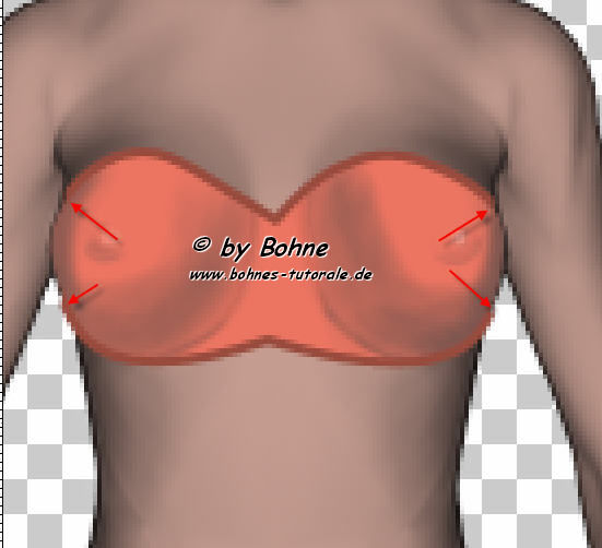 7) fahre jetzt mit dem Nachbelichter-Werkzeug die Kontur der Brust ein paar mal nach