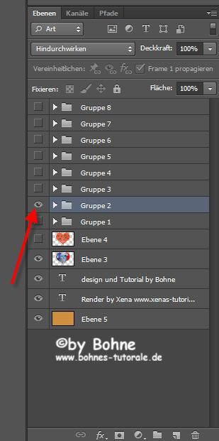 38) dupliziere Gruppe 2 und benenne sie Gruppe3, dann schliesse das Auge der Gruppe 2